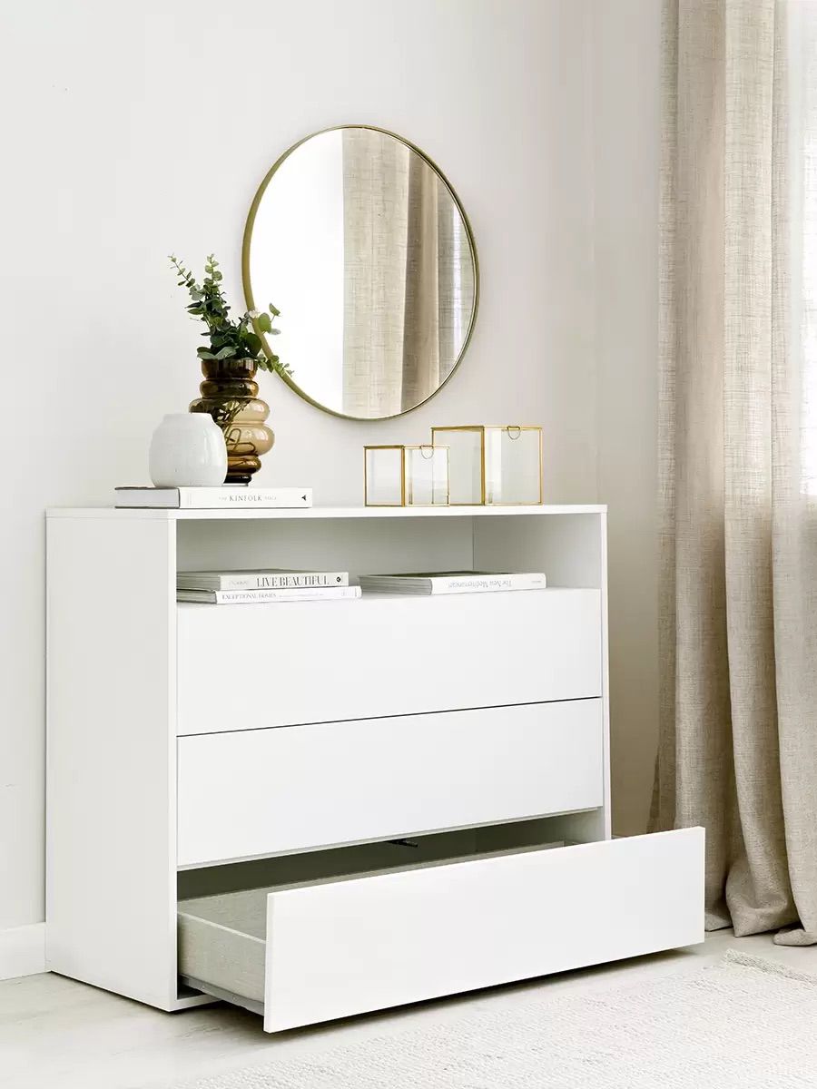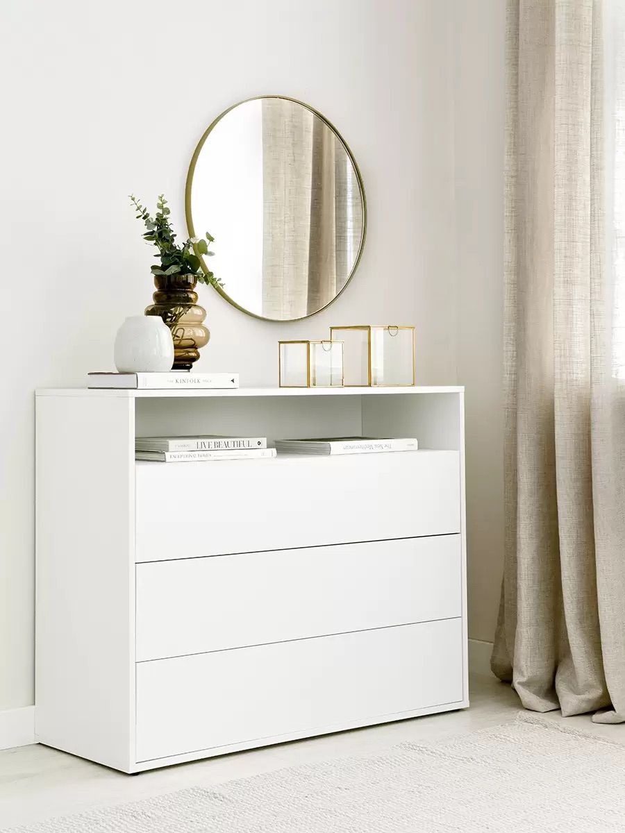 Comoda Diseño minimalista realizada en Melamina Blanca de Egger linea Maciza de 18 mm de espesor